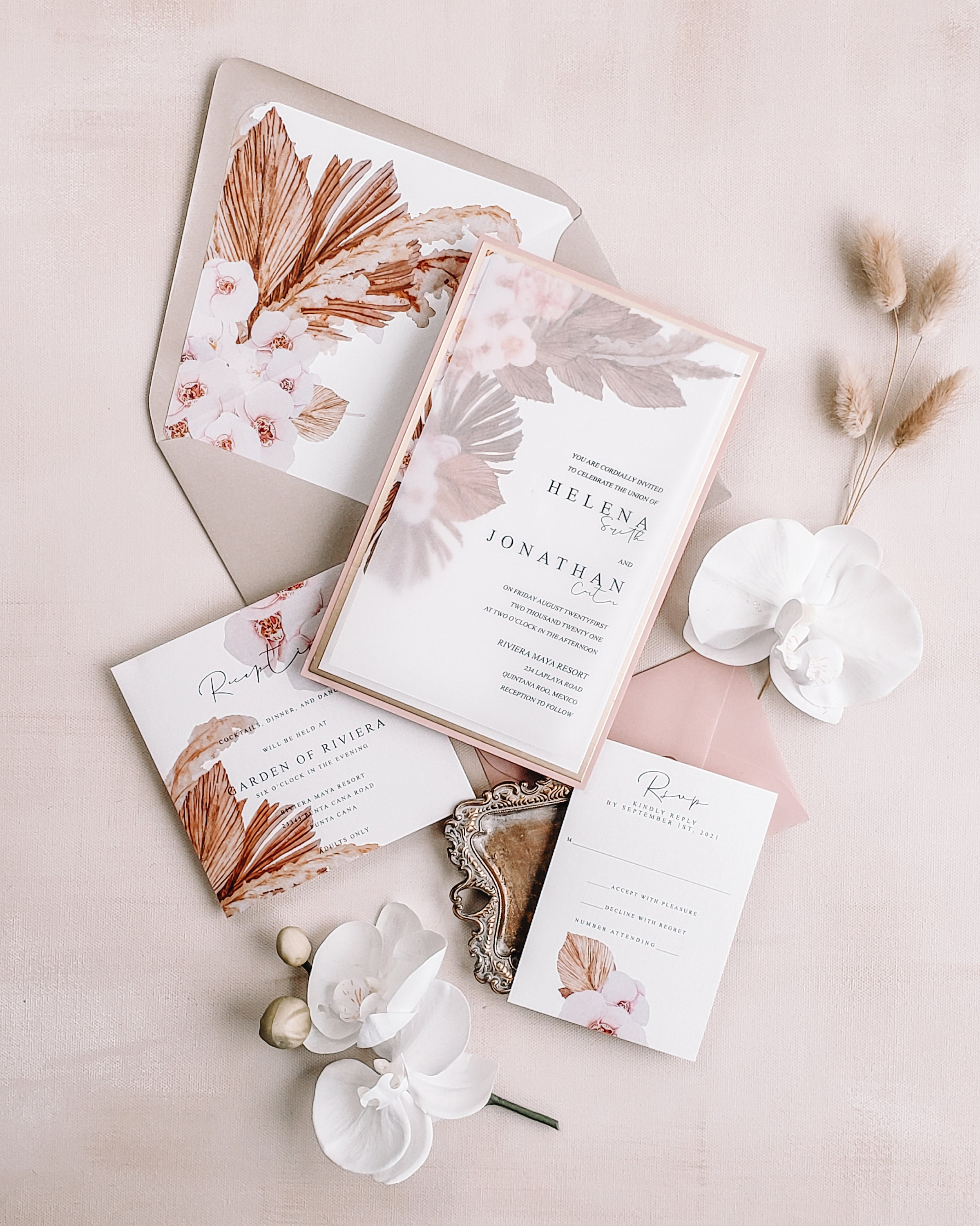 Pampas grass wedding invitations Tropical Orchid wedding Etsy Italia